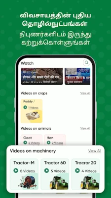 உங்கள் பயிர்களில் நோய் தாக்குதலா? அல்லது எந்த வகை பூச்சிக்கொல்லி சிறந்தது என்று தெரியவில்லையா? நிஞ்ஜா கிசான் மூலம், அனுபவமிக்க வேளாண் வல்லுநர்களிடம் நேரடியாகக் கேட்டு, வெறும் 15 நிமிடங்களுக்குள் துல்லியமான மற்றும் நம்பகமான பதிலைப் பெறலாம். புத்தக அறிவை மட்டும் நம்பாமல், கள அனுபவம் வாய்ந்த நிபுணர்கள் உங்கள் குறிப்பிட்ட தேவைக்கேற்ப சரியான வழிகாட்டுதலை வழங்குவார்கள். இயற்கை விவசாயம், மலர் வளர்ப்பு, கடுகு, கோதுமை, உருளை, தக்காளி, மிளகாய், வெங்காயம், கால்நடை வளர்ப்பு மற்றும் வேளாண் இயந்திரங்கள் எனப் பலதரப்பட்ட தலைப்புகளில் சாகுபடி நுட்பங்கள், நோய் மேலாண்மை, மற்றும் மகசூலை அதிகரிக்கும் வழிமுறைகள் குறித்த ஆயிரக்கணக்கான காணொலிகள் மற்றும் கட்டுரைகள் எங்கள் தளத்தில் உள்ளன. வெற்றிகரமான விவசாயிகளின் அனுபவங்கள் மூலம் புதிய தொழில்நுட்பங்களைக் கற்றறிந்து, உங்கள் வேளாண் அறிவை மேம்படுத்திக்கொள்ளலாம்.