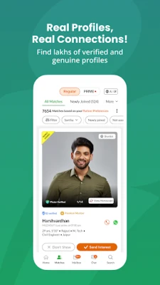 உங்கள் சுயவிவரத்தை உருவாக்கி, லட்சக்கணக்கான பொருத்தமான வரன்களை ஆராய்வதன் மூலம் உங்கள் வாழ்க்கைத் துணையை நோக்கிய பயணத்தைத் தொடங்குங்கள். எங்கள் அதிநவீன MIMA™ AI-இயங்கும் பொருத்துதல் வழிமுறை, உங்களுக்கு மிகவும் இணக்கமான பரிந்துரைகளை வழங்குகிறது. புதிய பொருத்தங்கள், உங்கள் சுயவிவரத்தில் ஆர்வம் காட்டுபவர்கள் அல்லது உங்கள் பதில்களுக்கு வரன்கள் எதிர்வினையாற்றும் போது உடனடி அறிவிப்புகளைப் பெறுங்கள். நகரம், கல்வி, தொழில் மற்றும் பலவற்றின் அடிப்படையில் உங்கள் துணையைத் தேர்ந்தெடுக்க மேம்பட்ட வடிகட்டிகளைப் பயன்படுத்தவும். பிரீமியம் உறுப்பினராக, பாதுகாப்பான உடனடி அரட்டை மற்றும் குரல் அழைப்பு அம்சங்கள் மூலம் வரன்களுடன் எப்போது வேண்டுமானாலும், எங்கிருந்தாலும் இணைந்திடுங்கள். அரசு அடையாள அட்டை சரிபார்க்கப்பட்ட நம்பகமான சுயவிவரங்களுக்கான "ராஜஸ்தானி மேட்ரிமோனி பிரைம்" அணுகலைப் பெறுங்கள். பிரீமியம் உறுப்பினர்கள் பிரிவில் இடம்பெற்று, அதிக பதில்களைப் பெறுங்கள். இருப்பிடம், கல்வி மற்றும் ஜாதகம் போன்ற முழுமையான சுயவிவர விவரங்களை அணுகி, தெளிவான முடிவெடுக்கலாம். உங்கள் பாதுகாப்பு மற்றும் தனியுரிமைக்கு நாங்கள் முன்னுரிமை அளிக்கிறோம். SecureConnect® அம்சம் உங்கள் மொபைல் எண்ணை வெளியிடாமல் வரன்களிடமிருந்து அழைப்புகளைப் பெற உதவுகிறது. உங்கள் படங்கள், தொடர்பு விவரங்கள் மற்றும் சுயவிவரத்தை யார் பார்க்கலாம் என்பதையும் நீங்களே கட்டுப்படுத்தலாம்.